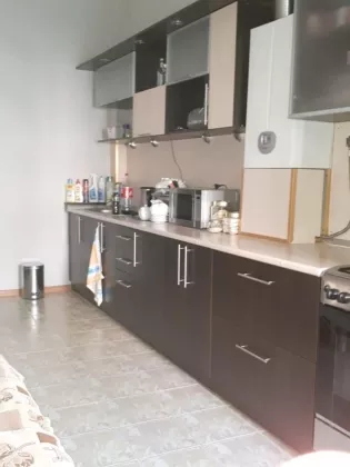 Просторная кухня 15 кв.м.,жилая площадь 45 кв.м., есть остекленная лоджия, санузел совмещенный. Продается с мебелью и бытовой техникой.