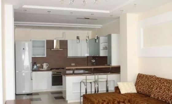 B квартире сделан евроремонт узаконенной перепланировкой. Установлен современный импортный насос, бак для холодной воды емкостью 640 л., бойлер 100 л., новая современная мебель, красивое освещение, во всех комнатах установлены кондиционеры (фирмы Fujitsu), установлены дополнительные батареи , лоджия застеклена и утеплена (дополнительная батарея), современная кухня, совмещенная с гостиной (американский вариант кухни). состоит из: прихожей (коридор) - 8 кв.м.; ванной комнаты - 3,6 кв.м.; санузла, совмещенного с бойлерной - 2,9 кв.м.; спальни - 18,8 кв.м. с 2 встроенными шкафами - 2,3 кв.м. и 1,4 кв.м. из спальни выход на лоджию - 4кв.м.; спальни - 16,7 кв.м и встроенным шкафом - 1,6 кв.м.; гостиной совмещенной с кухней - 34,9 кв.м. Все остается. Море в шаговой доступности