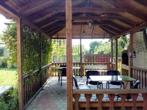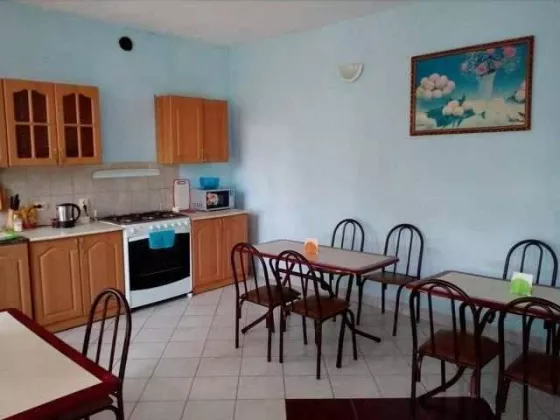 ТРЕХЭТАЖНЫЙ ГОСТЕВОЙ ДОМ 300 КВ.М. В ГОЛУБОЙ БУХТЕ Готовый бизнес. Дом имеет 18 номеров стандарт и эконом класса. 3 этажа. Каждый номер рассчитан на 2 человека + возможность дополнительного места. Каждый номер оборудован всей необходимой мебелью, в каждом номере - холодильник. На 1м этаже - 4 номера, на 2м этаже - 8 номеров и на 3м, мансардном этаже - 6 номеров. На 1м и 2м этажах по 1му санузлу на каждые 2 номера, т.е. на 4 человека - свой санузел, душ, туалет. В номерах - вентиляторы. На 3м этаже в каждом номере свой санузел, кондиционеры. В доме имеется большая кухня- столовая со всем набором посуды для самостоятельного приготовления пищи. Бойлерная с газовым котлом для горячей воды. Имеется отдельный номер для проживания горничной или администратора. В доме - электричество, газ, канализация - центральные, вода - своя скважина 60м. на участке. Перебоя с водоснабжением не бывает даже в самое жаркое время. Летом разрастается чудесный виноград, который даёт тень и вкусные плоды к осени. На участке - уютная беседка. Имеется место для парковки автомобилей. Развитая инфраструктура : магазины, почта, остановка транспорта в шаговой доступности. И самое - главное - до моря всего 300 метров, 7минут неспешной ходьбы. Пляж каменисто- галечный, считается самым чистым, ездят купаться из центра города. С другой стороны - большой сосновый лес. Дом работает только в летний сезон, отличная заполняемость. Но при желании можно переоборудовать несколько номеров для зимнего проживания а так же при желании 1й этаж можно переоборудовать для проживания хозяев .Wi Fi. Асфальт до дома. Наработанная клиентская база. Номера забронированы практически на всё лето. За сезон можно получить неплохой доход. Возможны различные варианты для усовершенствования. Или как вариант - сдавать в аренду. В собственности более 3х лет,