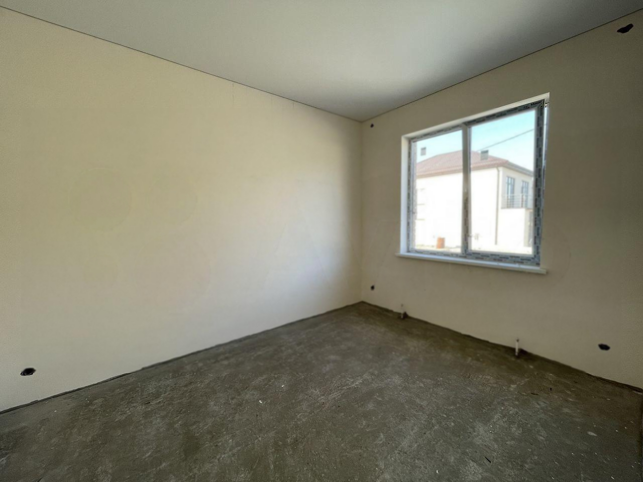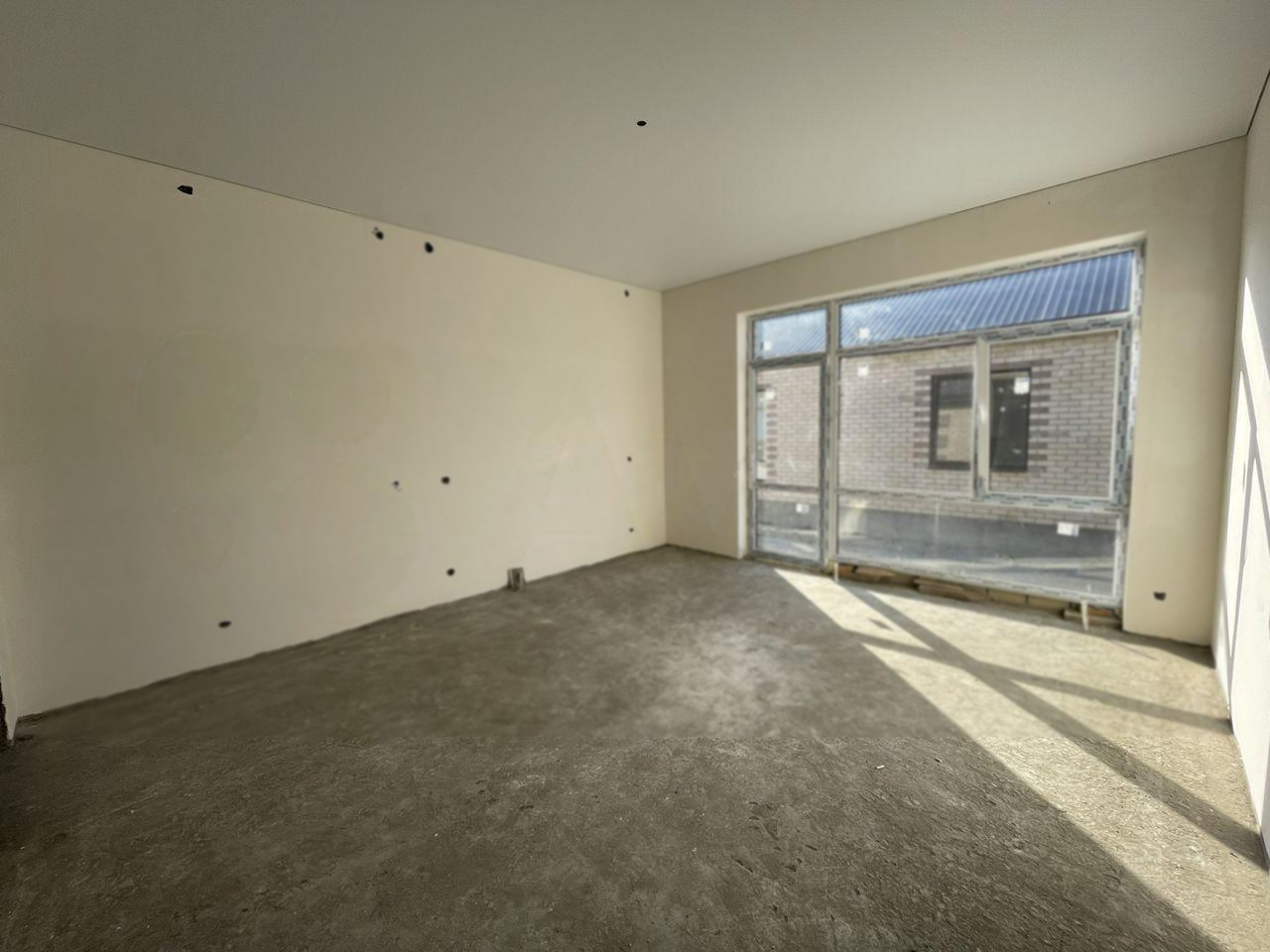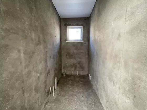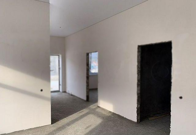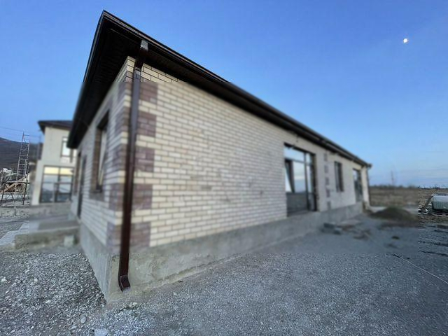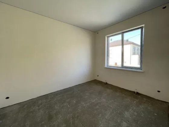 В доме просторная кухня-гостиная 23 м2 с панорамным окном и выходом на террасу, 2 спальни, ванная комната и туалет. Сделана предчистовая отделка: штукатурка и шпаклёвка, натяжные потолки во всём доме, высота потолка 3 метра. Выполнена разводка электричества, отопления, воды и канализации. Газ в перспективе.