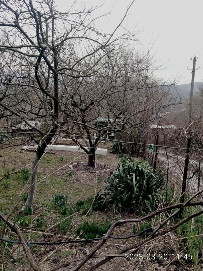 Участок с небольшим склоном, ухоженный, растут плодовые деревья, есть небольшая тепличка, колодец с чистой водой.