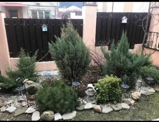 Дом построен из кирпича, перекрытие стен - плиты. Центральное водоснабжение, газ, канализация и электричество, есть собственная скважина, система водоочистки, водяной котёл. В доме сделан качественный ремонт Первый этаж имеет площадь 133 кв.м и состоит из гаража на два машиноместа, бойлерной с газовым котлом, системой очистки, постирочной. В жилой зоне первого этажа дома: прихожая, кухня - гостиная со встроенной техникой, спальня, детская и две ванных комнаты. Второй этаж имеет площадь 136 кв.м и состоит из библиотеки, двух спален и кухни - гостиной. В доме два отдельных входа, что даёт возможность для проживания двух семей или сдачи в аренду Проект дома позволяет достроить третий этаж. На участке имеется зона отдыха с крытой беседкой, качелями и зоной барбекю ; посажены плодовые и декоративные деревья: инжир, черешня, персики, яблоня,смородина, виноград и розы. Хороший спальный район, рядом остановка, магазины, школа, детский садик, до моря 2 км , что в 20 минутах ходьбы. Дом и земля в собственности к продаже готовы.