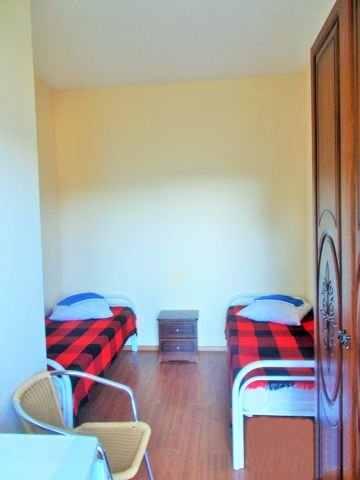 ТРЕХЭТАЖНЫЙ ГОСТЕВОЙ ДОМ 300 КВ.М. В ГОЛУБОЙ БУХТЕ Готовый бизнес. Дом имеет 18 номеров стандарт и эконом класса. 3 этажа. Каждый номер рассчитан на 2 человека + возможность дополнительного места. Каждый номер оборудован всей необходимой мебелью, в каждом номере - холодильник. На 1м этаже - 4 номера, на 2м этаже - 8 номеров и на 3м, мансардном этаже - 6 номеров. На 1м и 2м этажах по 1му санузлу на каждые 2 номера, т.е. на 4 человека - свой санузел, душ, туалет. В номерах - вентиляторы. На 3м этаже в каждом номере свой санузел, кондиционеры. В доме имеется большая кухня- столовая со всем набором посуды для самостоятельного приготовления пищи. Бойлерная с газовым котлом для горячей воды. Имеется отдельный номер для проживания горничной или администратора. В доме - электричество, газ, канализация - центральные, вода - своя скважина 60м. на участке. Перебоя с водоснабжением не бывает даже в самое жаркое время. Летом разрастается чудесный виноград, который даёт тень и вкусные плоды к осени. На участке - уютная беседка. Имеется место для парковки автомобилей. Развитая инфраструктура : магазины, почта, остановка транспорта в шаговой доступности. И самое - главное - до моря всего 300 метров, 7минут неспешной ходьбы. Пляж каменисто- галечный, считается самым чистым, ездят купаться из центра города. С другой стороны - большой сосновый лес. Дом работает только в летний сезон, отличная заполняемость. Но при желании можно переоборудовать несколько номеров для зимнего проживания а так же при желании 1й этаж можно переоборудовать для проживания хозяев .Wi Fi. Асфальт до дома. Наработанная клиентская база. Номера забронированы практически на всё лето. За сезон можно получить неплохой доход. Возможны различные варианты для усовершенствования. Или как вариант - сдавать в аренду. В собственности более 3х лет,