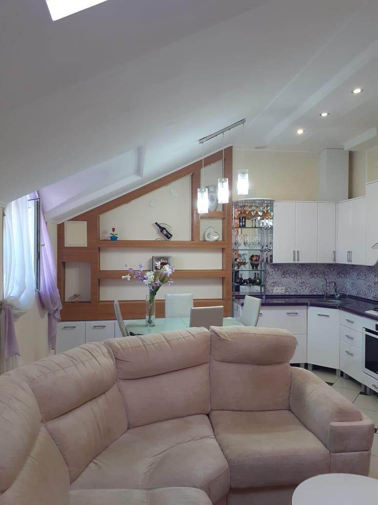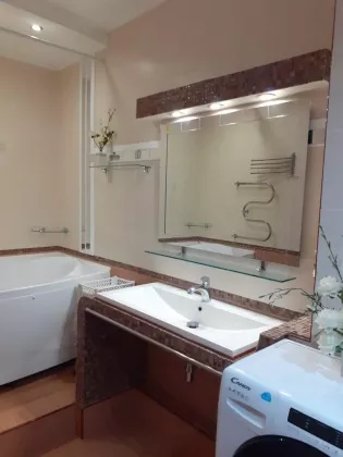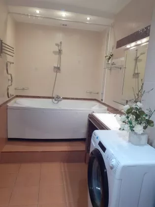 Квартира евродвушка 55 кв.м., просторная кухня- гостиная 24 кв.м., жилая комната 15,1 кв.м. , два санузла : 8,5 кв.м. и гостевой 2,2 кв.м. Выполнен качественный ремонт, хорошая бытовая техника, мебель. Закрытая придомовая территория. В шаговой доступности вся инфраструктура, остановка, магазины, аптеки, школа, детский садик, набережная, кафе.