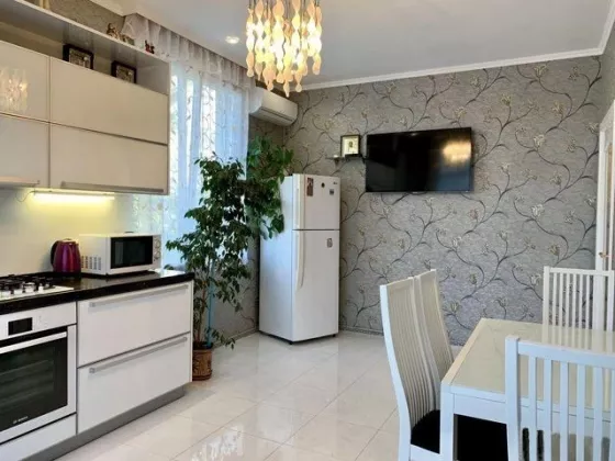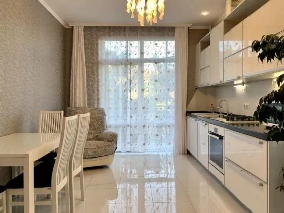 Новый монолитный дом, благоустроенная придомовая территория. Рядом остановка, магазины, школа, детские садики, до моря минут 15 пешком.