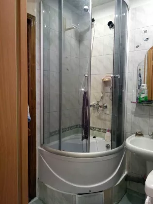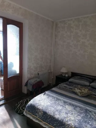 Квартира расположена на 1м этаже с отдельным входом, цоколь высокий, есть придомовая благоустроенная территория, парковка, посажены деревья.
