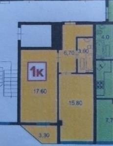Продается однокомнатная квартира, 50 кв.м., 6/8 эт