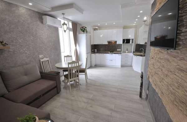 Просторная кухня гостиная, спальня, застекленный балкон с видом на море и улицу.